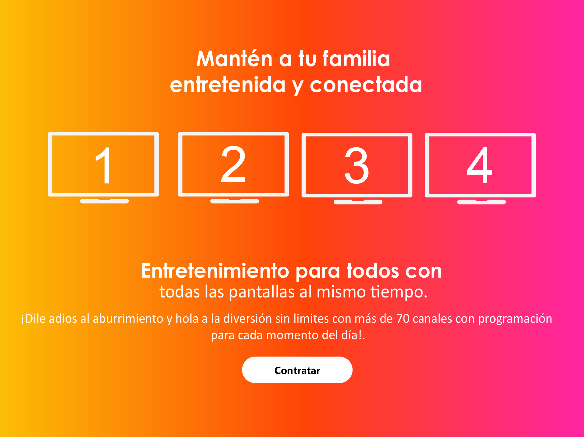 ¡Dile adiós al aburrimiento y hola a la diversión sin limites con mas de 70 canales con programación para cada momento del día!
